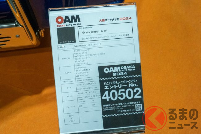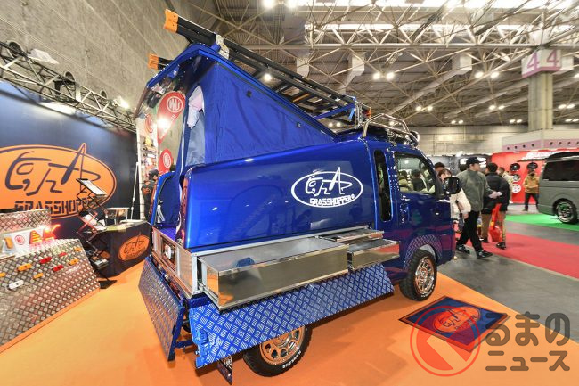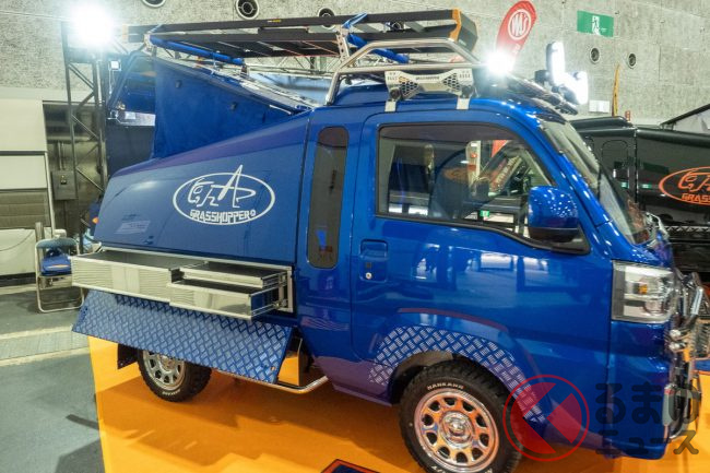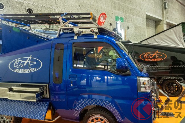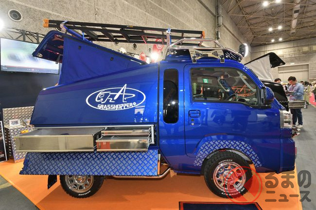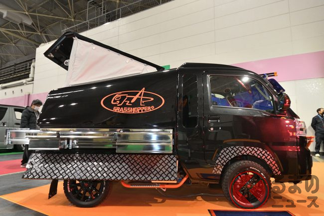 共立工業は、2024年2月10日から12日に開催された「大阪オートメッセ」にて軽トラックをかっこよく改造した「GRASSHOPPER(グラスホッパー)」を展示しました。