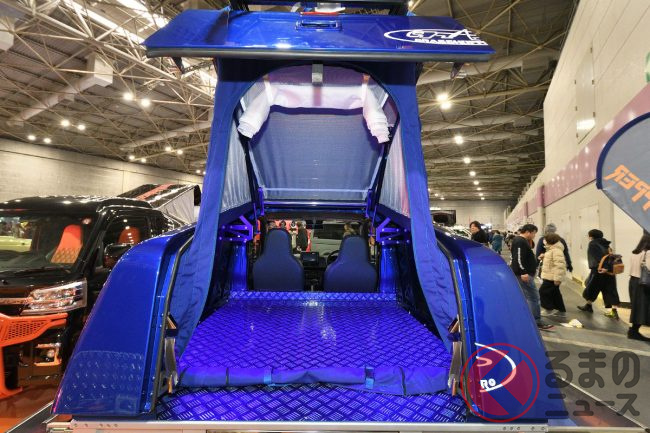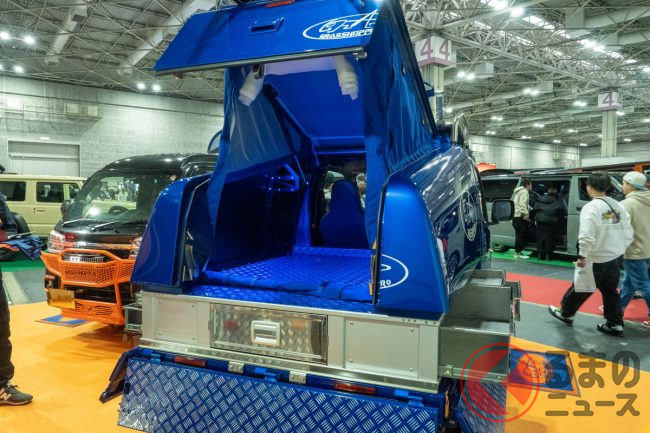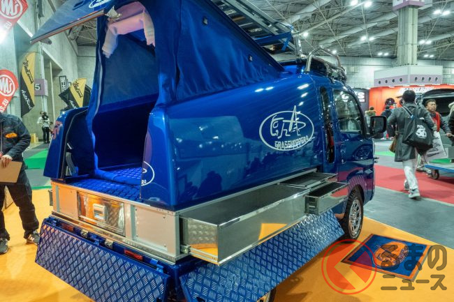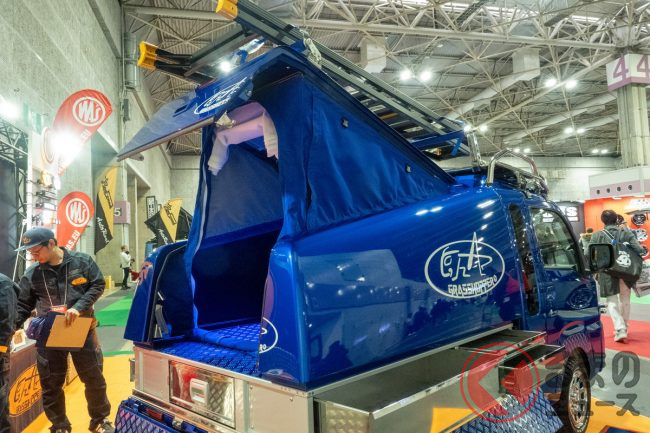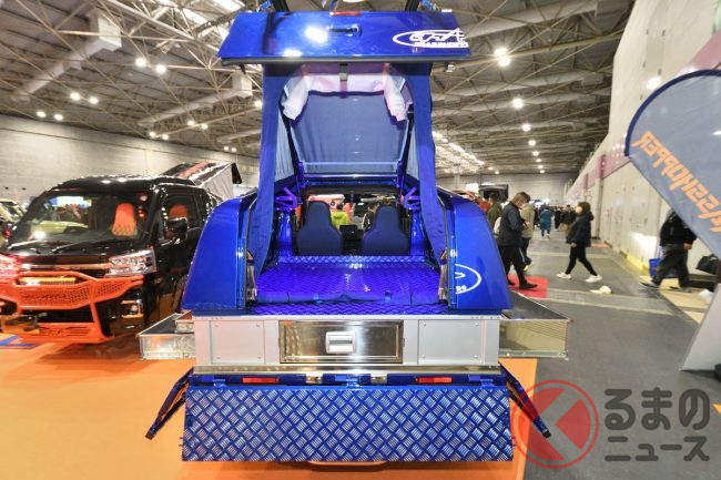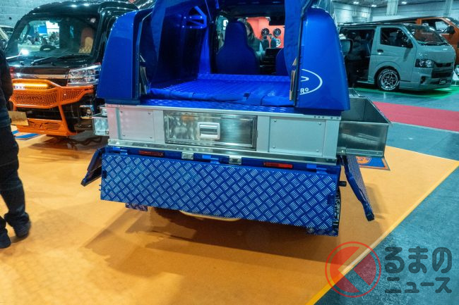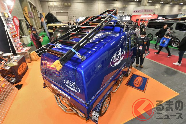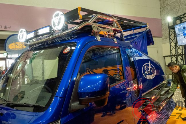2024年2月10日から12日にかけて行われたカスタムカーイベント「大阪オートメッセ」。こちらに、ベースが軽トラックと思えないほどカッコよいカスタムカーが持ち込まれていました。