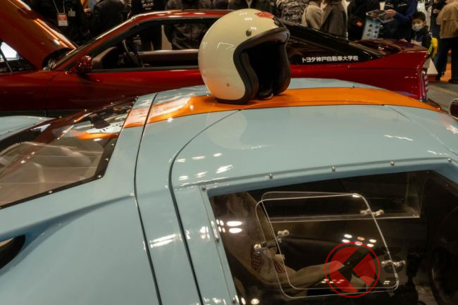 日本工科大学校は建設学部やAI学部などを有する兵庫県の専門学校です。今回イベントで登場したGT40のレプリカ「HORD PP40」は、同校の自動車学部がカスタムを行いました。