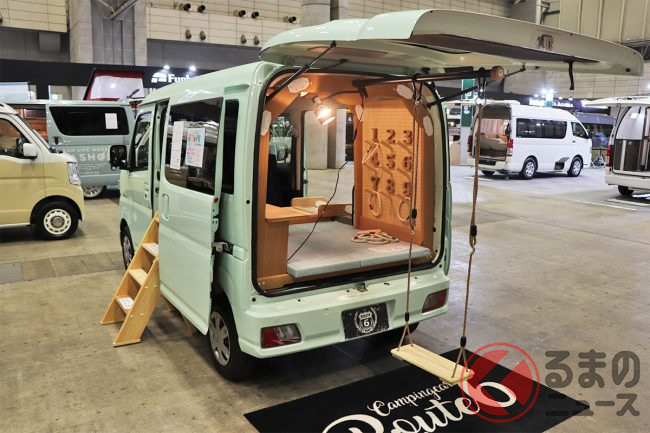 軽を中心としたキャンピングカーメーカーのルートシックス(茨城県水戸市)は、「ジャパンキャンピングカーショー2024」に「あそべるくるま」をコンセプトにした軽ワンボックスバン「プレイモ」を参考出品し、ファミリーの来場者から注目を集めていました。