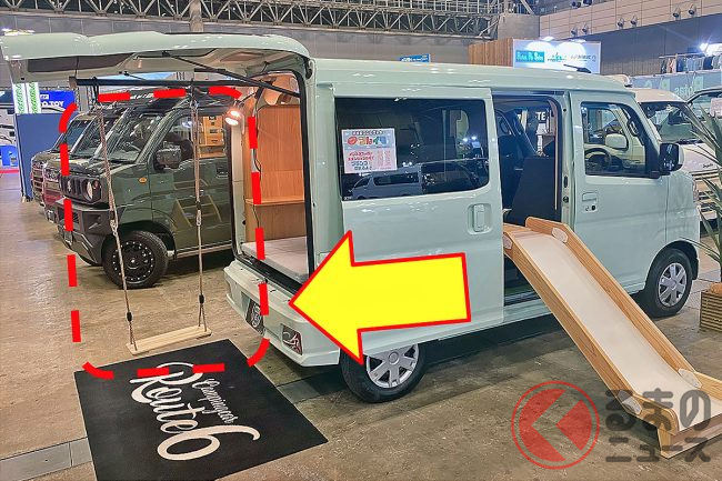 新型「“公園”軽バン」初公開!? 滑り台とブランコ採用! まさかの「遊べるクルマ」市販化の可能性は?