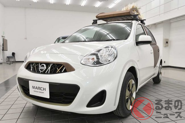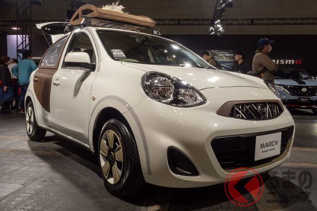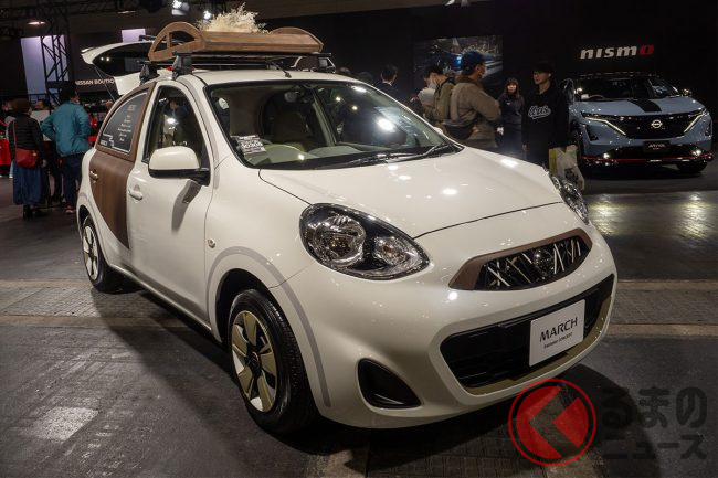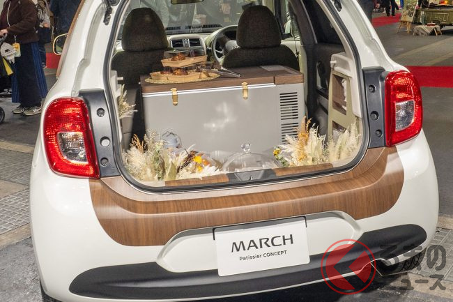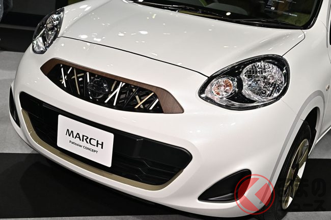 日産は、2024年2月10日から12日にかけ行われたカスタムカーイベント「大阪オートメッセ」に、中古車プロジェクト第2弾となる「MARCH Patissier CONCEPT(マーチ パティシエ コンセプト)」を出品し、注目を集めていました。