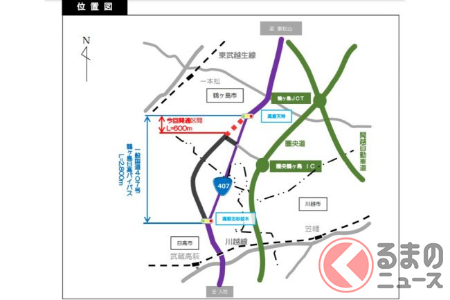 埼玉県西部で整備中の国道407号「鶴ヶ島日高バイパス」がついに完成を迎えます。いったいどんな道路で、どれだけ便利になるのでしょうか。