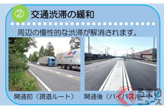 そこで、西側へ新ルートを敷く形で、1991(平成3)年にバイパス道路整備の都市計画が決定。2009(平成21)年に事業着手し、順次南側から延伸開通していました。
