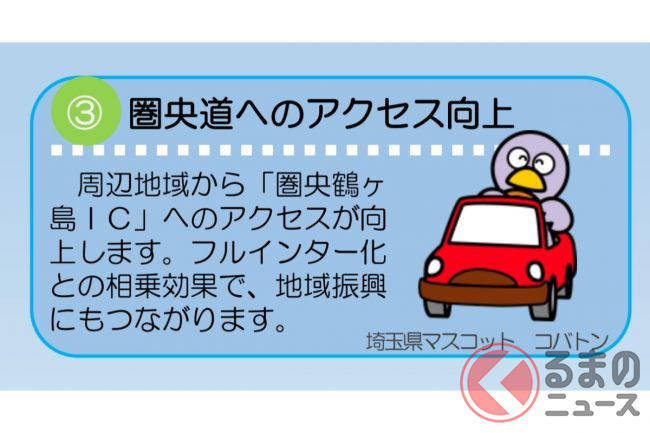 完成すればここを通り抜ける所要時間は、10分から4分に大幅短縮。圏央道の圏央鶴ヶ島ICにもスムーズにアクセスできるようになります。
