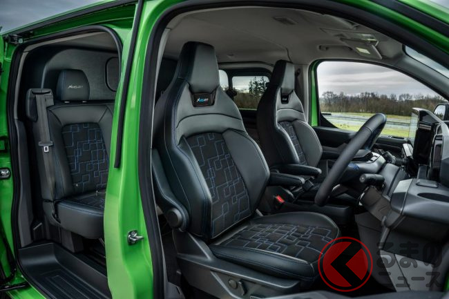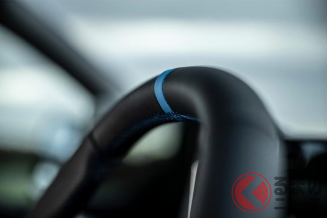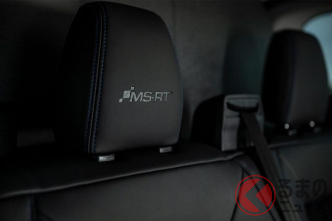 ブラック基調のインテリアは、MS-RTのブランドカラーであるライトブルーを差し色としてあしらうほか、シートがサポート性を高めたセミバケットタイプになっているのが特徴です。