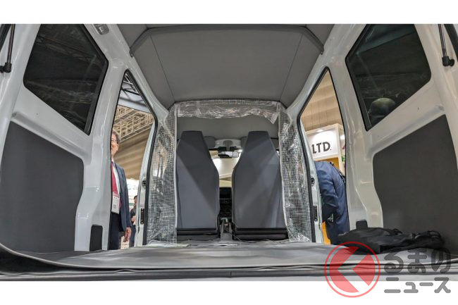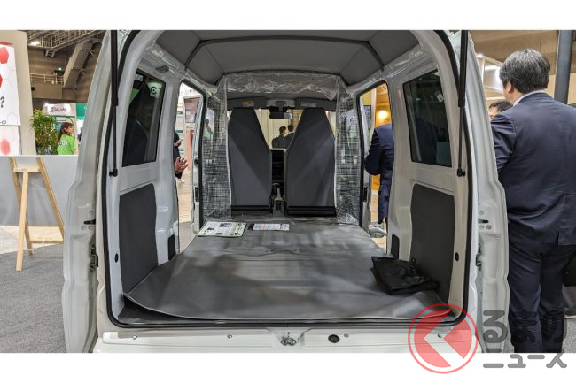 新型「軽バン 2人乗り仕様」実車展示! ホンダは前後、日産・三菱は左右で違いアリ!? 価格はどうなる? 他社に負けない三菱の強みとは