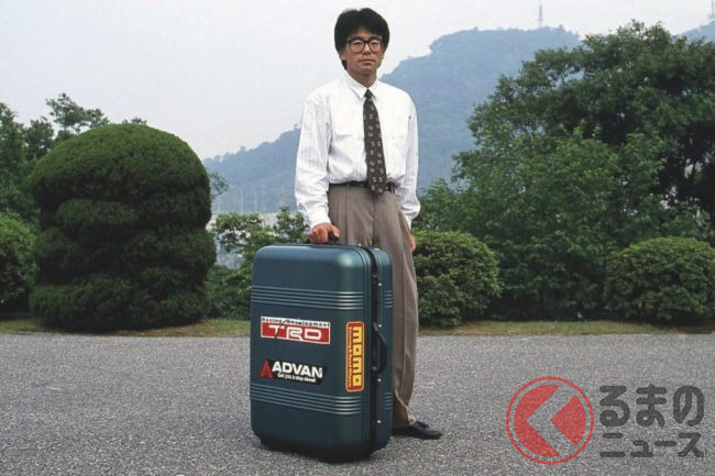 優勝を勝ち取ったトランスミッション試験研究部門のエンジニアたちは、そのアイデアを実現するための予算を獲得。さっそく高さ75cm、幅57cmという大きなサムソナイトを用意すると、その中に、1.7psを発生する2ストローク単気筒・33.6ccのポケバイ用エンジン(ゼノア製G3K型)と3つの車輪を搭載しました。
