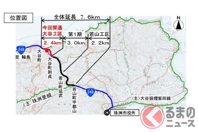 2021年に北半分が開通し、残る南半分も2022年に事業化。計2210mの全通を目指して用地取得などが進められています。