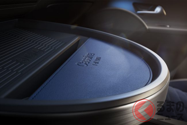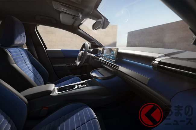 新型「小さな高級車」初公開! 「丸テーブル+超高級ソファ」の“青内装”が「めちゃオシャレ!」と話題に? 全長4m級で“600万円超え”の「イプシロン」に興味津々