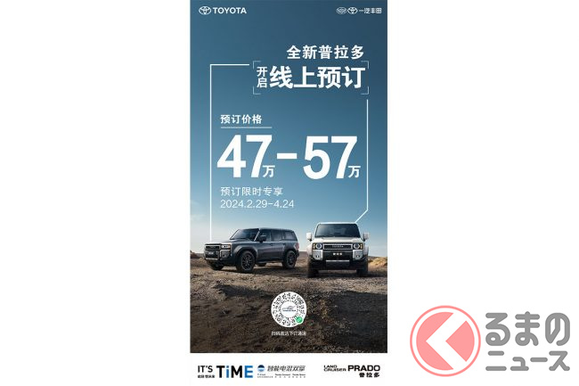 トヨタと中国第一汽車集団の合弁会社「一汽トヨタ」は2024年2月29日(現地時間)、新型「ランドクルーザープラド」(日本名:ランドクルーザー250)の注文予約を開始すると、公式SNSアカウントを通じて公表しました。