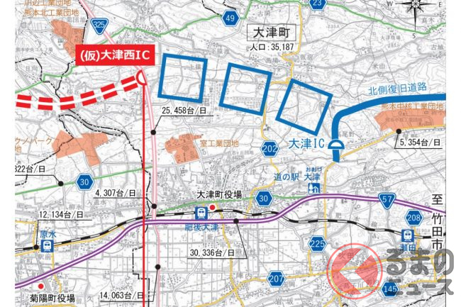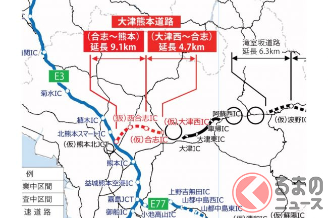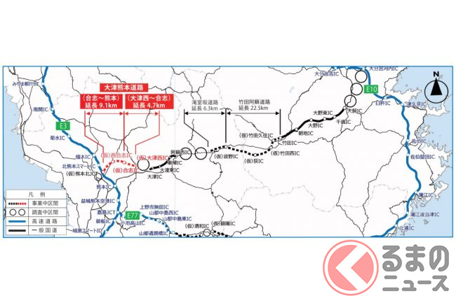 無料高速「熊本~大分」中九州横断道路が「残り1工区」に!? 熊本県内が「全工区事業化」へ 阿蘇まで信号無しで一直線「大津道路」開始秒読み