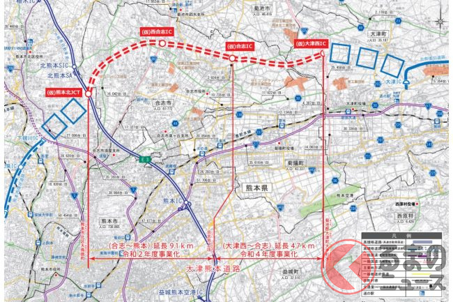 つまり、熊本県側は「全通のお膳立て」がいよいよ完了を迎えることとなります。大津道路が正式に事業化決定すれば、あとは用地取得と工事を粛々と進めるだけとなります。