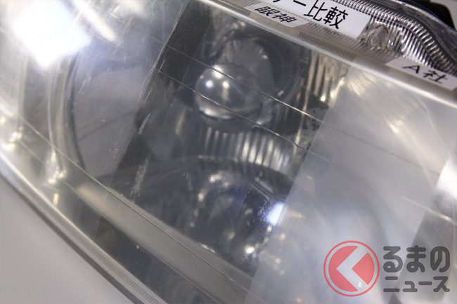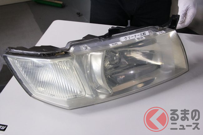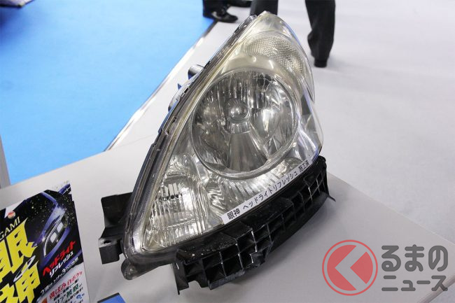発売に先立ち、都内で行われた新製品発表会では「眼神 ヘッドライトリフレッシュ」が施工されたヘッドライトASSYが展示され、黄ばんだヘッドライトカバーがクリアな状態にリフレッシュされた状態を確認できました。