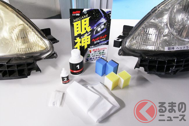 愛車のヘッドライトの黄ばみや白ボケをクリアに! ソフト99から「眼神 ヘッドライトリフレッシュ」登場