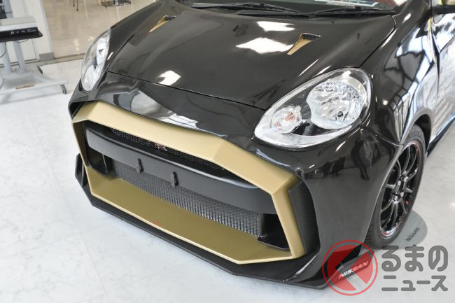 ド派手な斬新グリル採用の「日産 コンパクトSUV」発見! 跳ね上げドアのスポーティ仕様「VISION JUKE」 注目はボンネット裏?