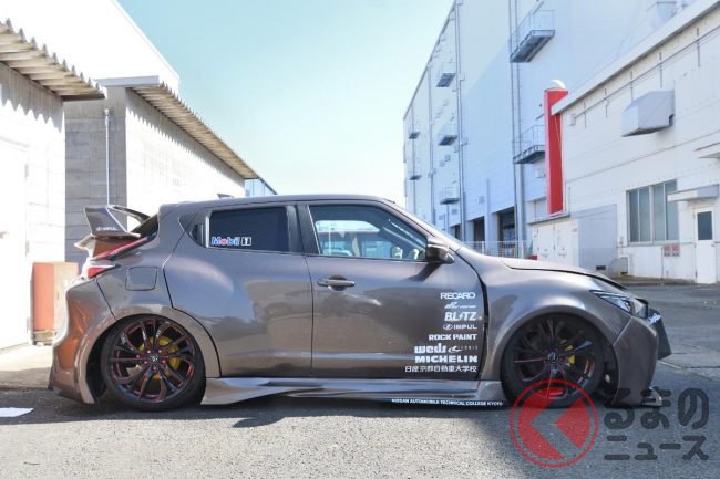 日産京都自動車大学校(以下京都校)の敷地内には過去に学生達が手掛けたカスタムカーが保管されています。そのひとつに「VISION JUKE」というモデルがあります。