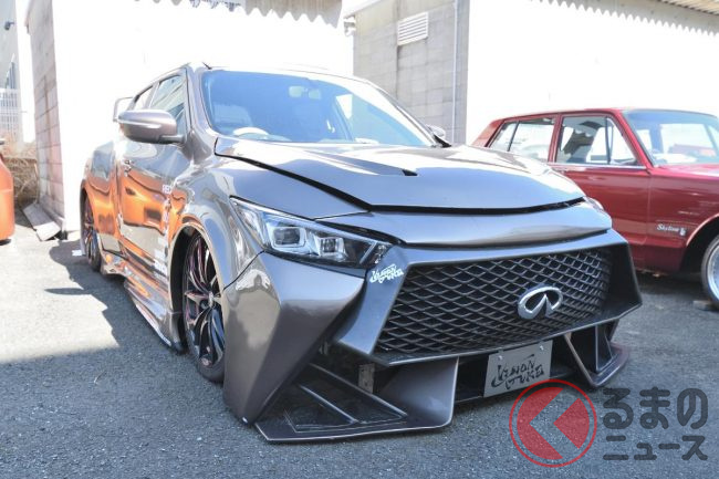 日産京都自動車大学校(以下京都校)の敷地内には過去に学生達が手掛けたカスタムカーが保管されています。