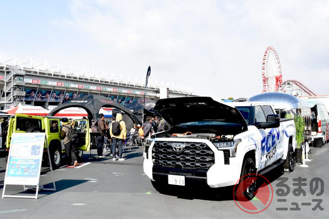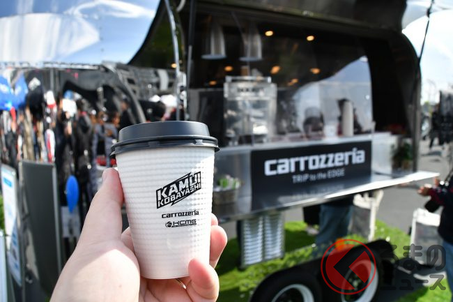 「carrozzeria × Kids com Team KCMG ラウンジ」では、日頃からコーヒーにこだわりのある小林可夢偉選手の「レースに足を運んでいただくお客さまに、ゆっくりできる空間とおいしいコーヒーを提供したい」という思いから、FCEV仕様のトヨタ「タンドラ」から供給される電力を使って、コーヒーを来場者に振る舞う取り組みを昨年から実施しています。