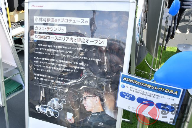 レースと合わせて鈴鹿サーキットのGPスクエア内の「SF NEXT50 ヴィレッジ」ではさまざまなイベントが開催されていましたが、そのなかのひとつが小林可夢偉選手と今年からチームに加わった福住仁嶺選手が所属する「Kids com Team KCMG」チームのブース「carrozzeria × Kids com Team KCMG ラウンジ」です。