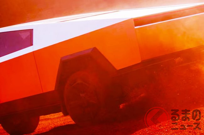 新型「斬新すぎ“カクカク”4WD」実車公開! 全長5m超えボディ&“アフリカ象”も引っ張れるパワトレ採用! ステンレスボディの「サイバートラック」日本導入は?