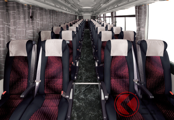 ボディは貸切タイプ、夜間高速/高速路線タイプを用意し、貸切ではサロン席、夜間高速/高速路線ではトイレ付車も設定。通常の12mボディに加え、9m短尺ボディの「ガーラ ハイデッカーナイン」もラインナップされています。