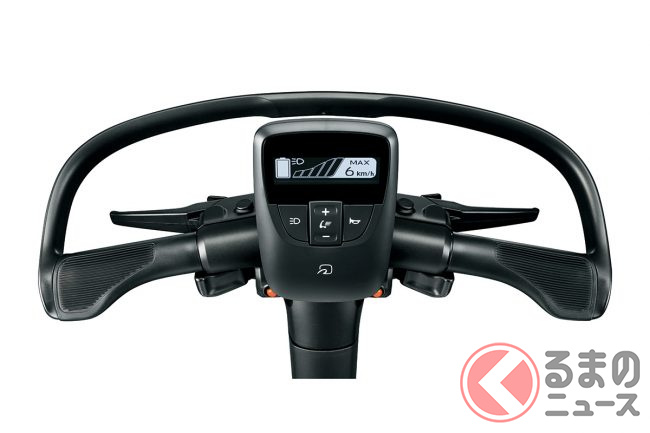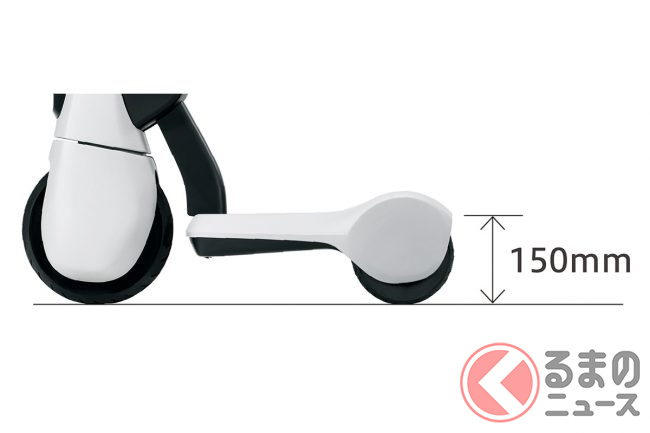 サイズは全長700mm×全幅450mmとなり、前に1輪、後ろに2輪を備え、ステップ高を150mmと低く設定したことで、乗り降りもしやすくなっています。
