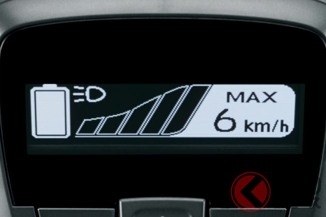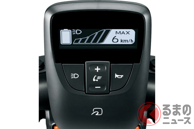 前方の人や障害物との衝突回避に寄与する障害物検知機能を搭載し、センサーが検知すると警告音とパネル表示で警告した後に時速約2キロまで減速します。