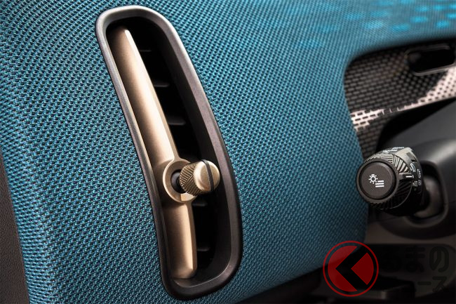 インパネは布地を連想させるリサイクルポリエステル素材を採用し、温かみのある印象と手入れの簡単さを両立しました。ほかリサイクル素材を多用しており、クロームパーツやレザーを排除して、サステナビリティを追求しています。