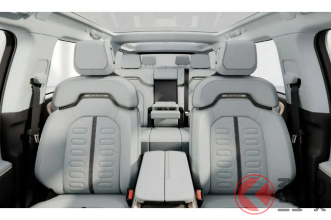 さて、新型「R2」は2列シート5人乗りのSUV。縦長のヘッドライトや横一文字のテールライトが特徴のシンプルな近未来的デザインはR1Sのイメージを踏襲する一方で、ボディサイズはR1Sが全長5m超の大型であるのに対し、R2は4.7m程度の中型。取り回しの良いサイズとなっています。