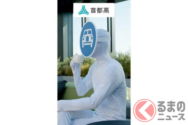 「僕を無視しないで!」 “顔が標識&全身白タイツ男”動画が話題に? なぜ首都高“公式”の「車顔男」公開されたのか