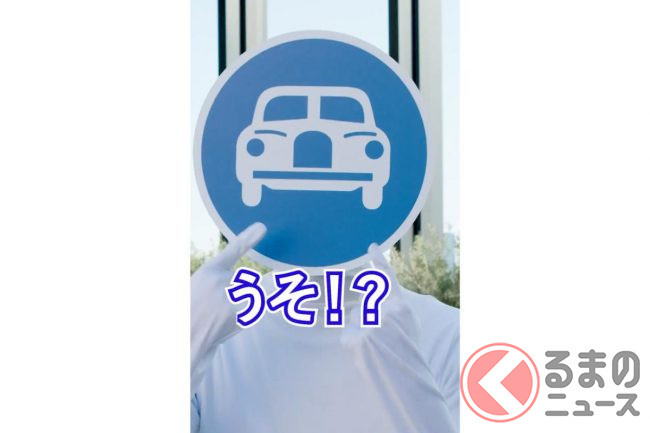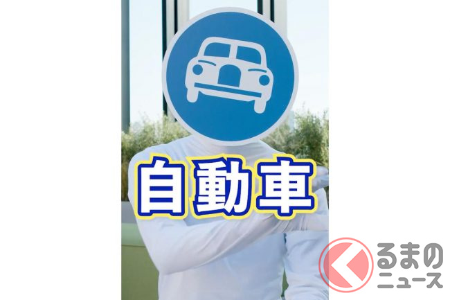 動画冒頭には、白い全身タイツに、顔が青いクルマの標識「自動車専用道路標識」を取り付けたキャラクターが登場。