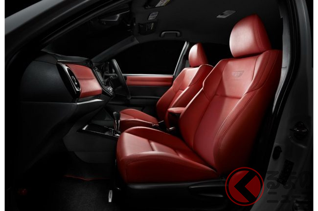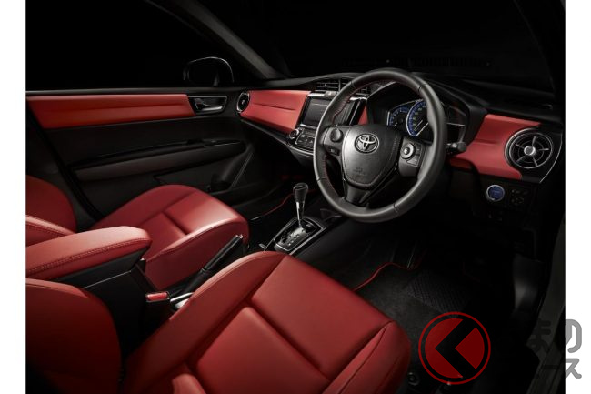目を引く「赤」のスポーツシートは、トヨタのデザイン部で保管されてきた初代カローラのカラーサンプルをもとに往年の「赤」を忠実に再現し、シートをはじめとする内装に採用するとともに、ブラックと組み合わせて配置することでモダンでありながらスポーティな室内空間を創出しています。