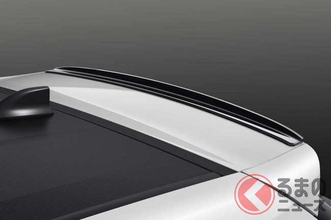 新型GRヤリス専用の空力アイテムとして「GRエアロパーツセット」を設定。フロントスポイラー・サイドスカート・リアバンパースポイラーといったエアロパーツに加えて「GRルーフスポイラー」を追加することで、リアタイヤの接地性を高め、コーナリング~加速時の安定感をさらに向上させます。