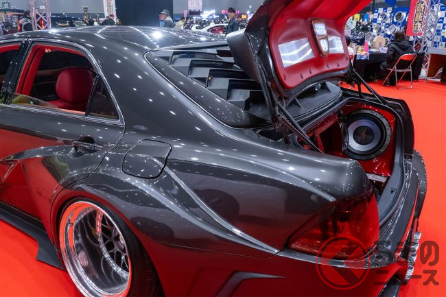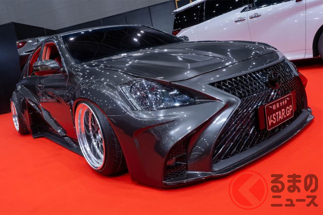 2024年3月9日と10日に行われたカスタムカーイベント「名古屋オートフェスティバル2024」で、見事な存在感を放っていたのが、V-STAR GPの作成した“レクサス顔”の「高級セダン」でした。どのような仕上がりだったのでしょうか。