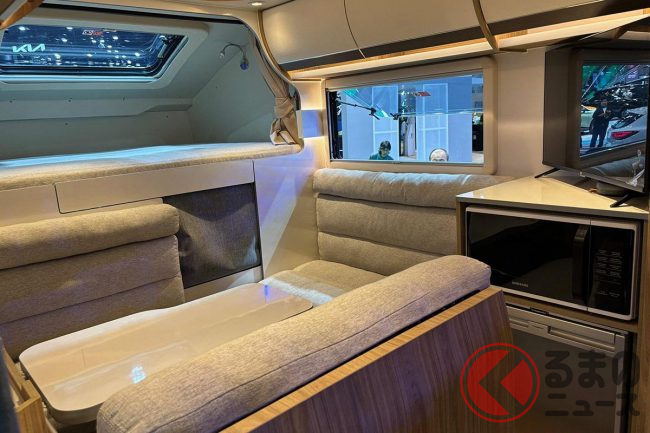 今回の展示車は、タイヤとホイールを強調した街乗り志向の乗用モデルや、各種商用で利用するモデル、そして注目されたのがキャンピングカータイプです。
