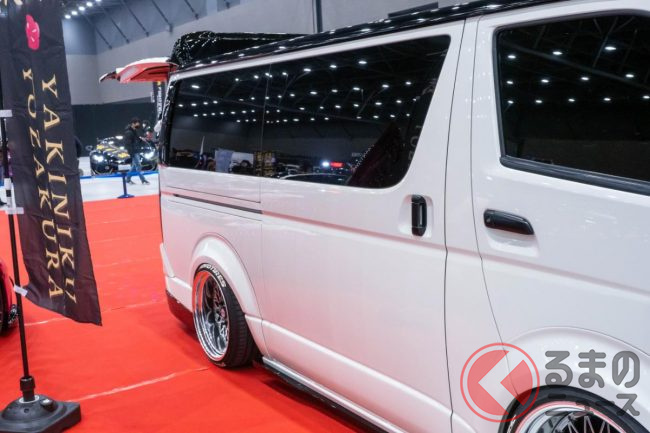 今回のカスタムカーは「S.A.D Custom Japan」の展開する「ハイエース STINGER J」をベースにしており、おおむねのパーツが装備されているそうです。会場でも多くの人が、車両に目を向けていました。