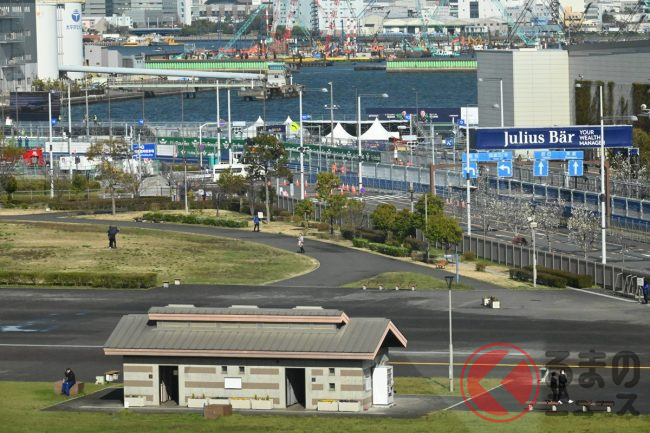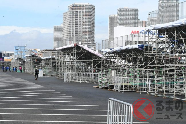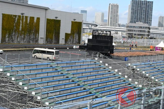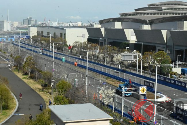日本初の国際レース大会の「市街地サーキット」のレースが、東京ビッグサイト周辺で2024年3月29日~30日に開催されます。いよいよ始まったレースウィークの会場はどうなっているのでしょうか。