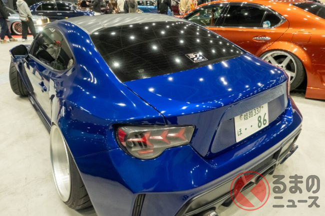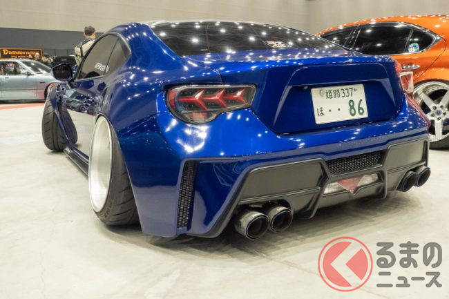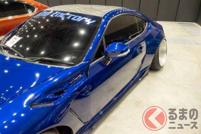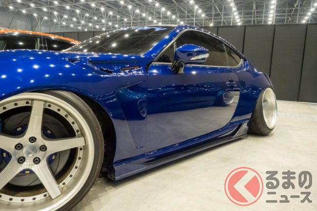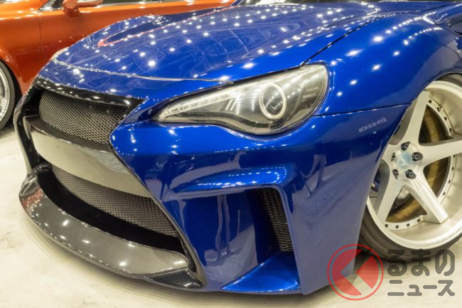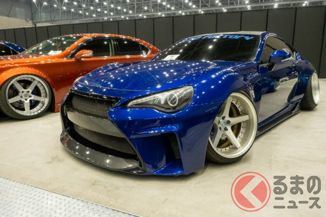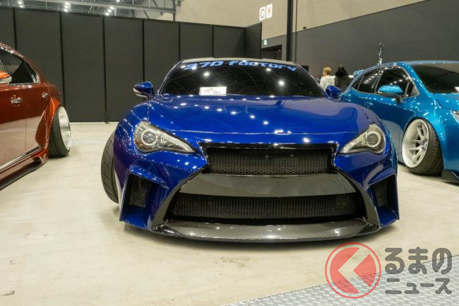 “レクサス顔“のトヨタ「86」実車公開!? ド迫力変貌で名古屋降臨! ワイルドなカスタムマシンに注目多数