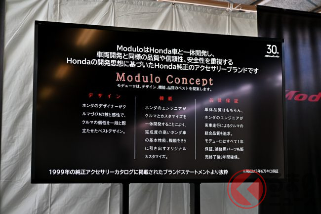 ホンダ純正アクセサリーのブランド「モデューロ」が2024年に誕生30周年を迎えました。モデューロ30年の歴史やアクセサリー開発秘話などが紹介された「Modulo 30th Anniversary EXPO Vol.1」の様子をリポートします。