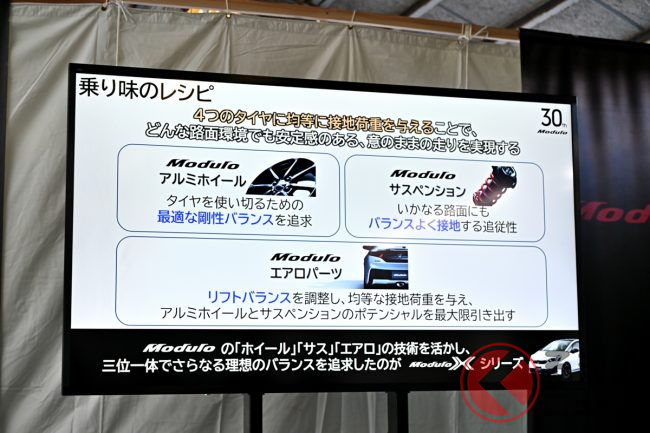 そのモデューロが誕生して今年で30年を迎えたということで、メディア向けに「Modulo 30th Anniversary EXPO Vol.1」がモビリティリゾートもてぎ(栃木県茂木町)で開催され、モデューロ30年の歴史やアクセサリー開発秘話などが紹介されました。