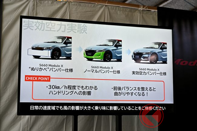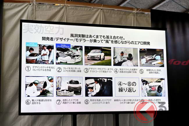 この時はまだモデューロブランドではありませんでしたが、現在のエアロにも通じる、風洞と実走の試験を行いしっかりした効果を見いだしており、現在につながる開発思想がこの時点で出来上がっていることに驚きます。