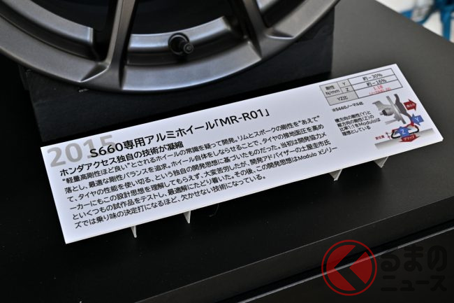 2015年にはアルミホイールの常識を疑って開発された、ホンダアクセス独自の技術力が凝縮された、S660用のアルミホイールである「MR-R01」を開発します。