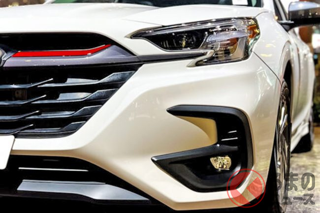 スバル「レガシィ」まだあった! 全長4.8m級でめちゃ“豪華内装”採用! 迫力顔の「レガシィ セダン」を米で実車展示
