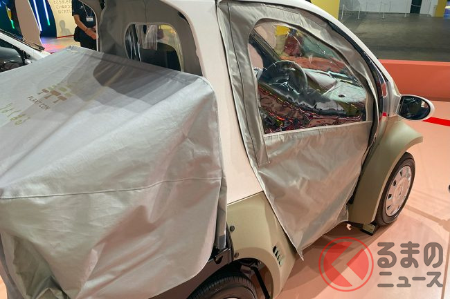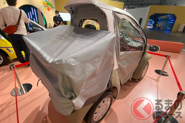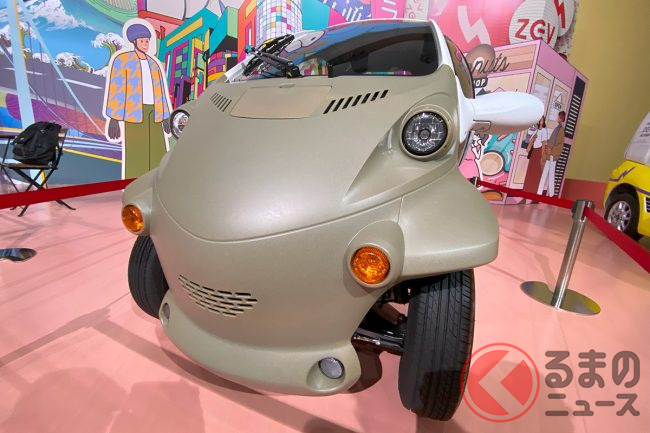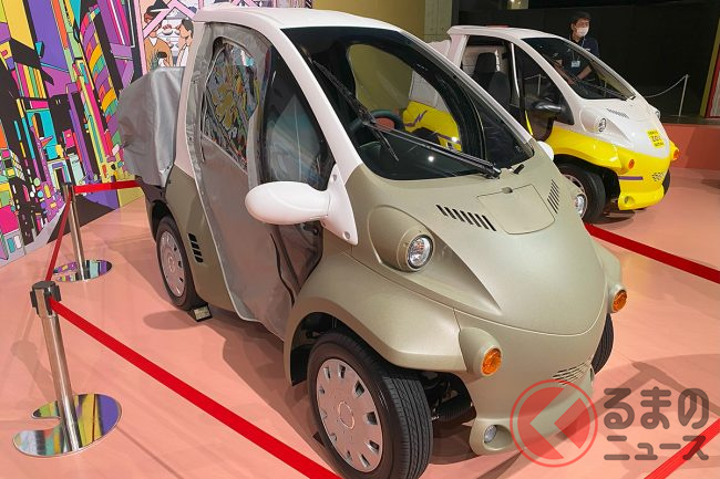 トヨタ車体が1人乗り「りょくまる」実車展示! 小さな丸目が斬新スギ!? 「謎の小型車」が実は凄かった
