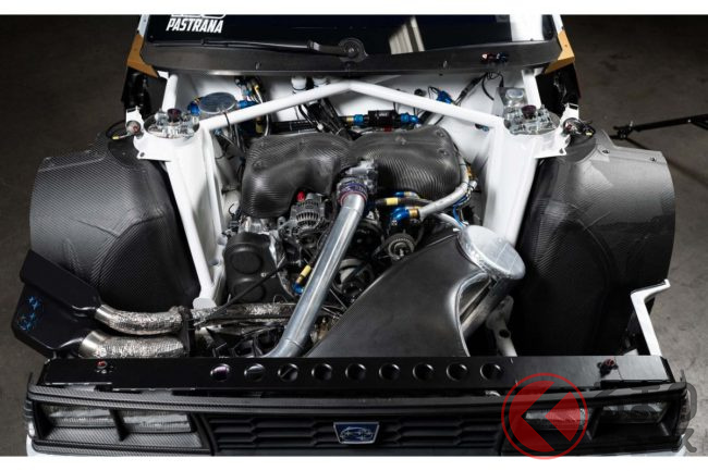 エンジンはラリークロス競技で使用されたものに基づき、最高出力862馬力・最大トルク664lb-ftまで高められた2.3リッター水平対向4気筒ターボエンジンを搭載。これに6速シーケンシャルギアボックスが組み合わされ、4輪を駆動します。
