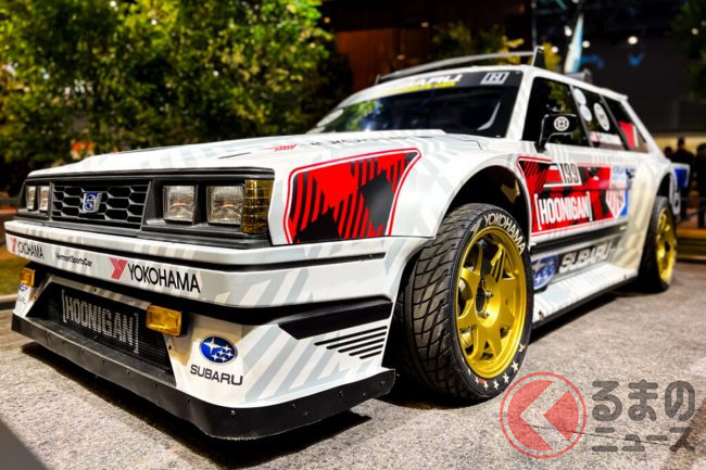 ブースでは、新型「フォレスター」や「レガシィ」など最新のモデルとともに「レオーネ ツーリングワゴン」が展示されましたが、ド派手な改造が施されています。