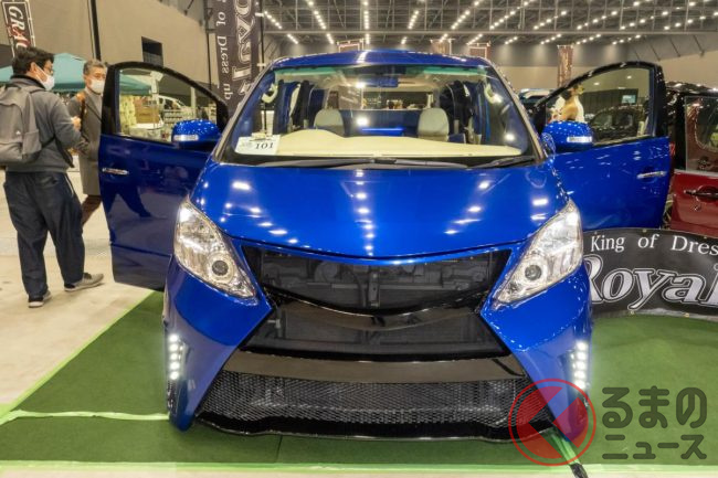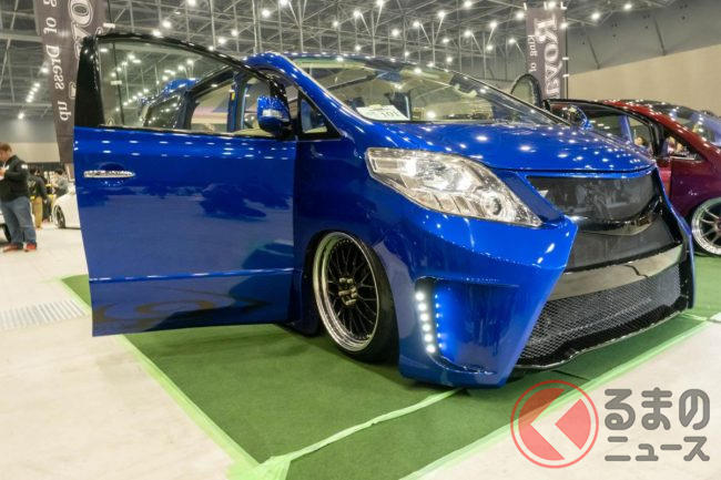 2024年3月9日から10日にかけて行われた「名古屋オートフェスティバル2024」で、“レクサス風”のフロントグリルと青のカラーが印象的なトヨタ「アルファード」が展示されていました。