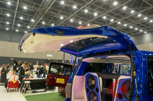 さらに、後部座席は取り外し大型のスピーカーを設置。こちらも青とアイボリーのカラーリングで、とても華やかです。