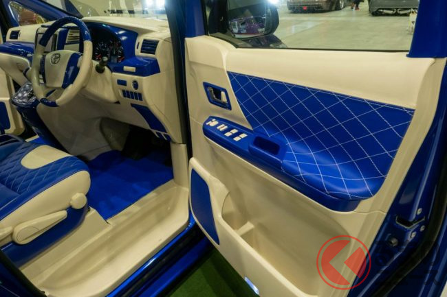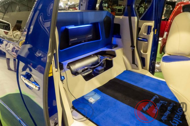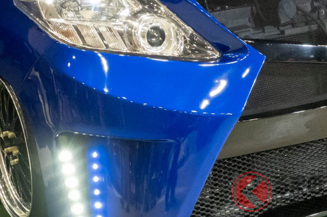 レクサス風のグリルと青のカラーリングをまとった「アルファード」が展示!